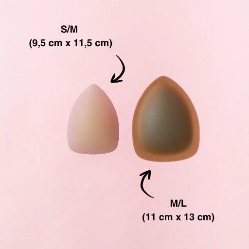 Talla S/M (9,5 cm x 11,5 cm): nuestra más vendida y la más versátil. Cubre de forma natural, sin exagerar. Perfecta si usas sujetador de copa A, B, C o D. Si no sabes por cuál decidirte, esta es probablemente tu mejor opción.